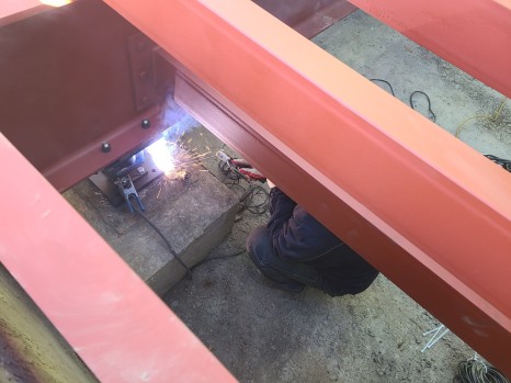 이후 철판을 크레인으로 이동 후 기초에 맞추어 철판 절단과 볼팅 작업을 진행합니다.