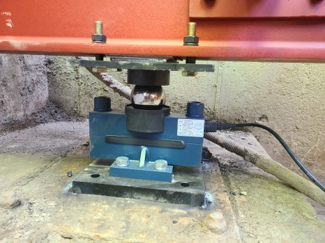 계근대 구조물을 정확한 위치에 안착시킨 후 로드셀 설치 및 배선 작업을 진행합니다.