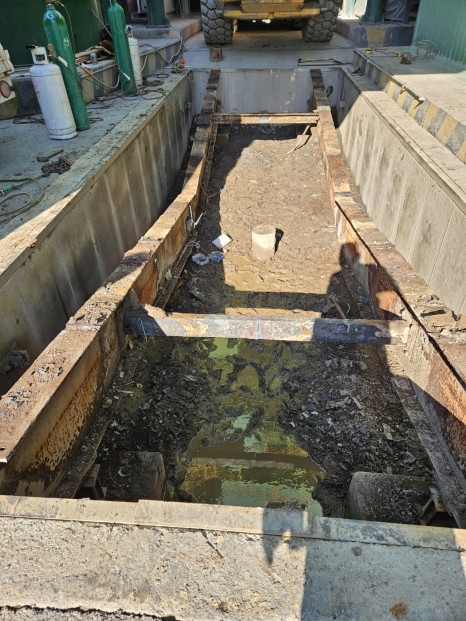 초기 계근대 설치 후 한번도 계근대 내부 청소 및 슬러지 제거를 하지 않아 상당한 양의 슬러지가 있었습니다.