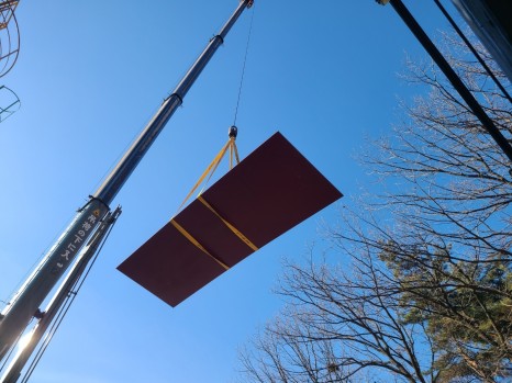 설치 현장에 공간이 협소하여 크레인으로 작업을 진행하였습니다.
