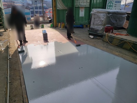 차량 계근대가 잘 설치되었는지 다시 한번 확인 후 철판 페인트 작업을 실시합니다.