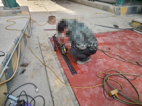 기존 차량 계근대 철거 작업 및 신규 3m x 9m 50톤 차량 계근대 설치작업 현장입니다.