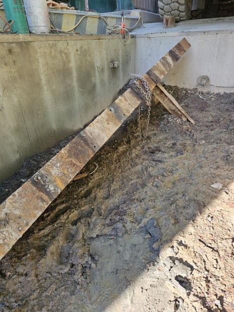 산소가스를 이용하여 철판볼트 및 크로스 빔 제거 작업 후 메인빔 600*200 절단 작업을 진행하였습니다.